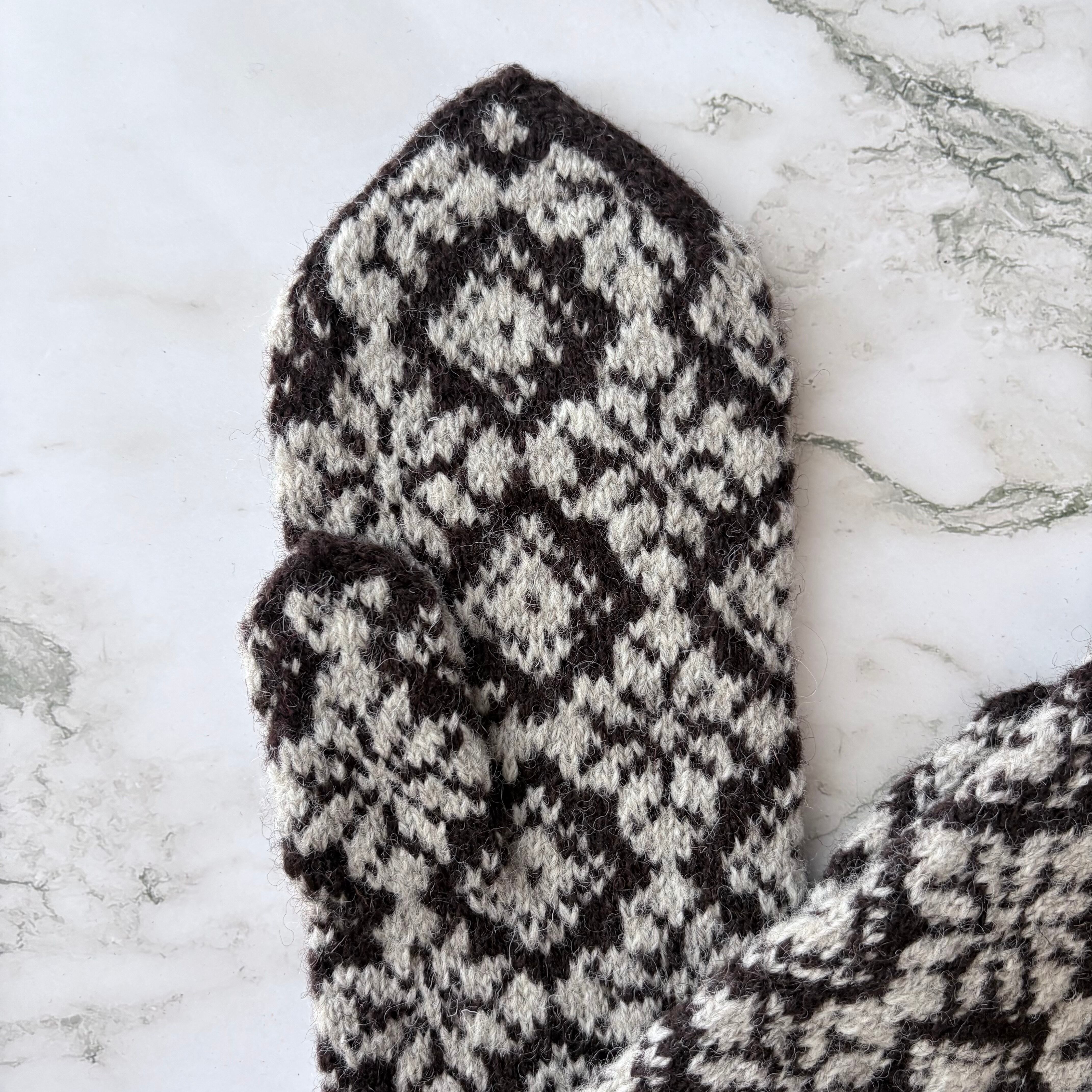 【リトアニアの温もりを纏う】伝統柄の手編みウールミトン