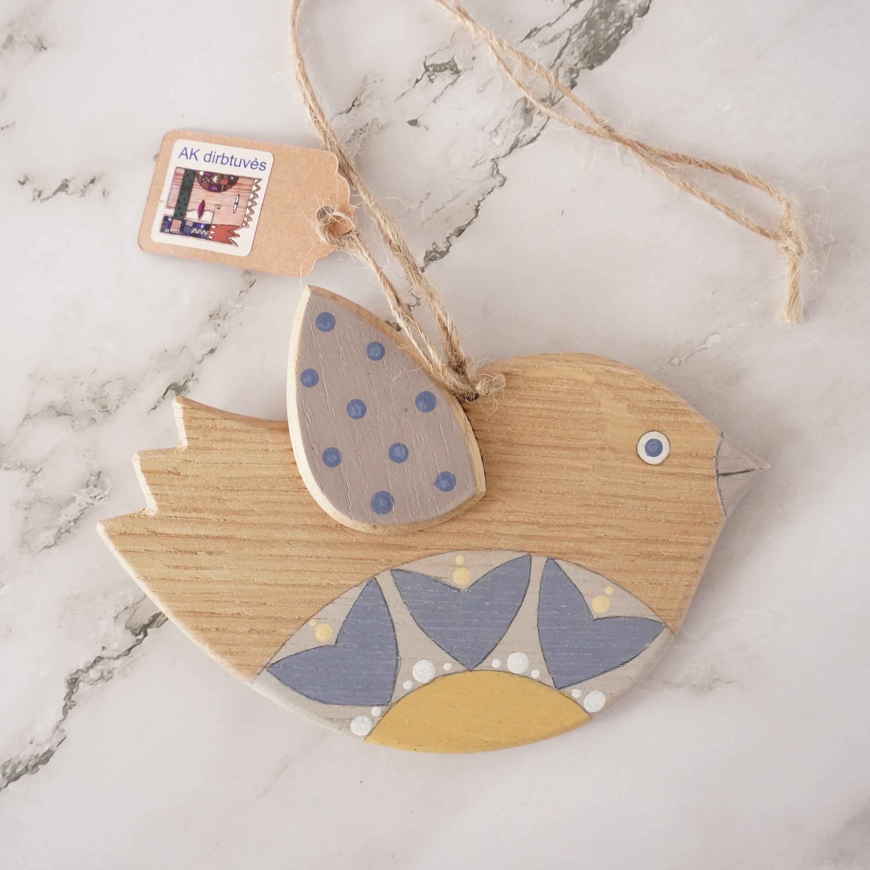 ふっくらとした愛らしい鳥の形をした木製のオーナメントは、リトアニアの自然と文化が息づく作品です。