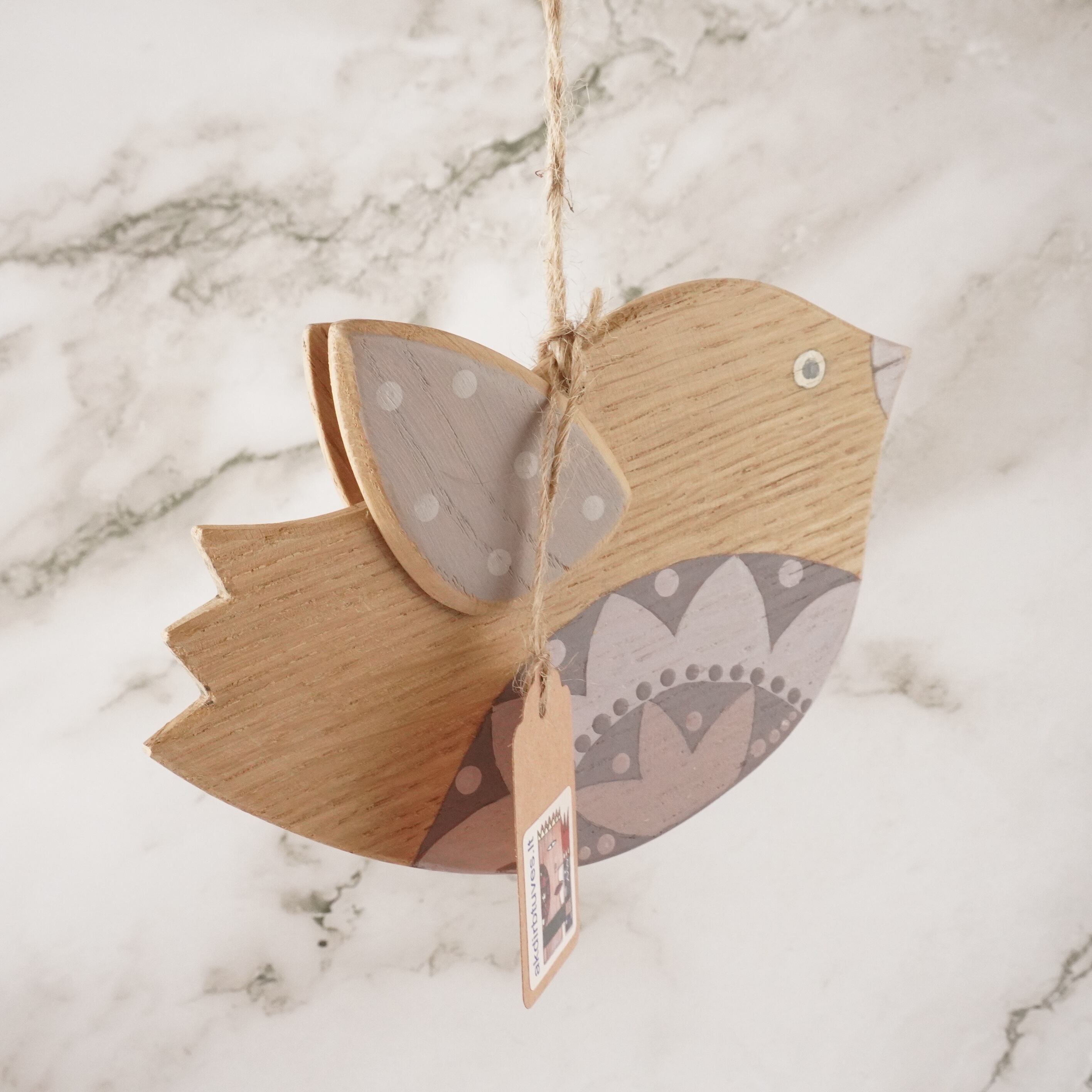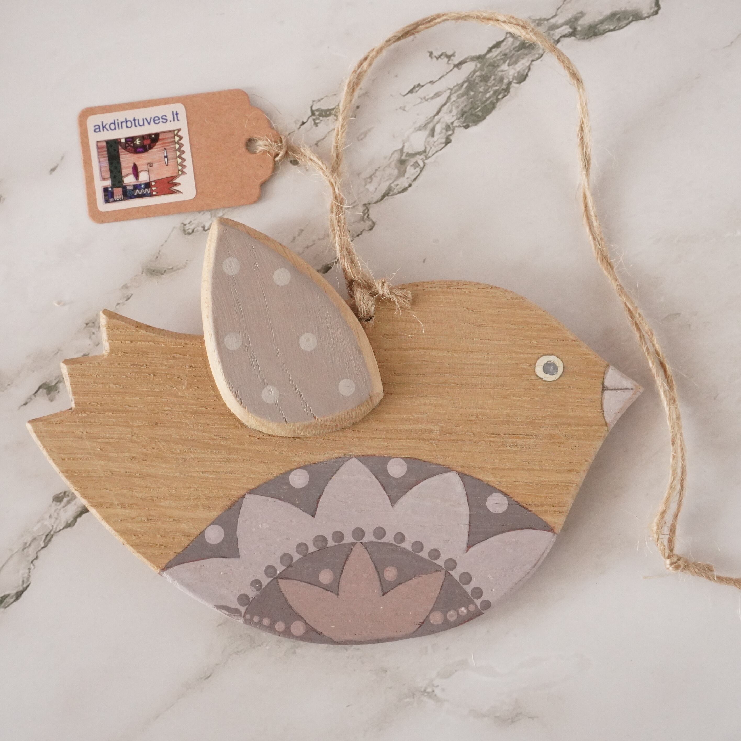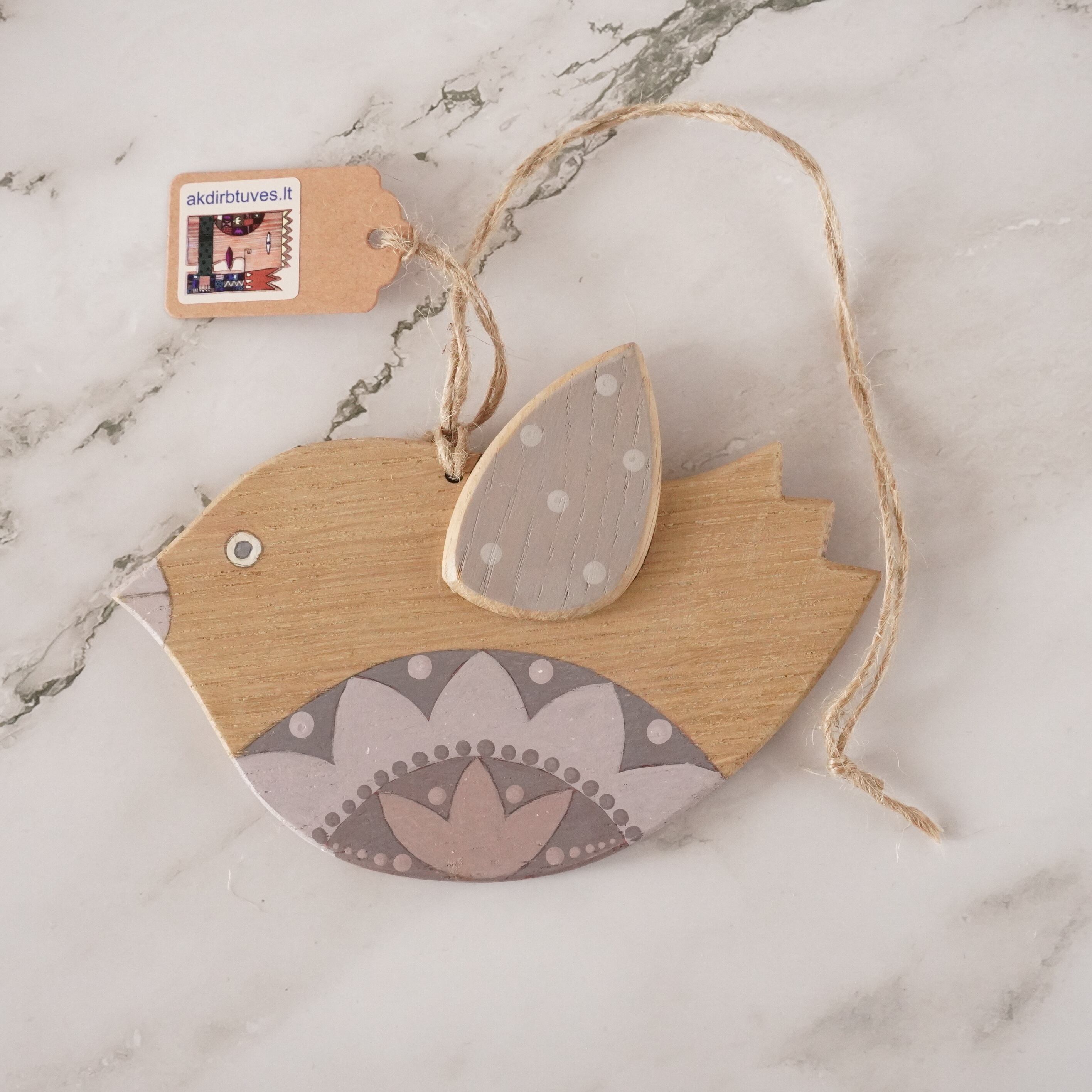 ふっくらとした愛らしい鳥の形をした木製のオーナメントは、リトアニアの自然と文化が息づく作品です。